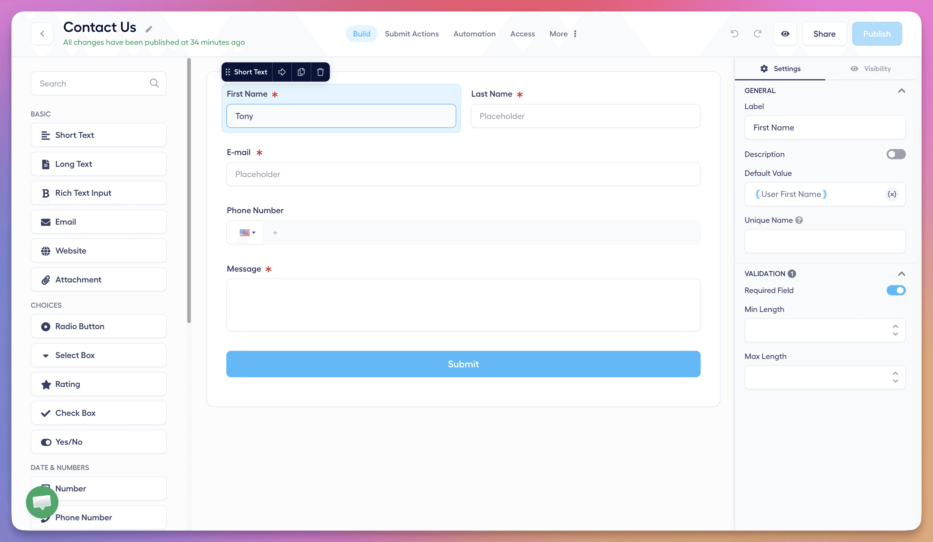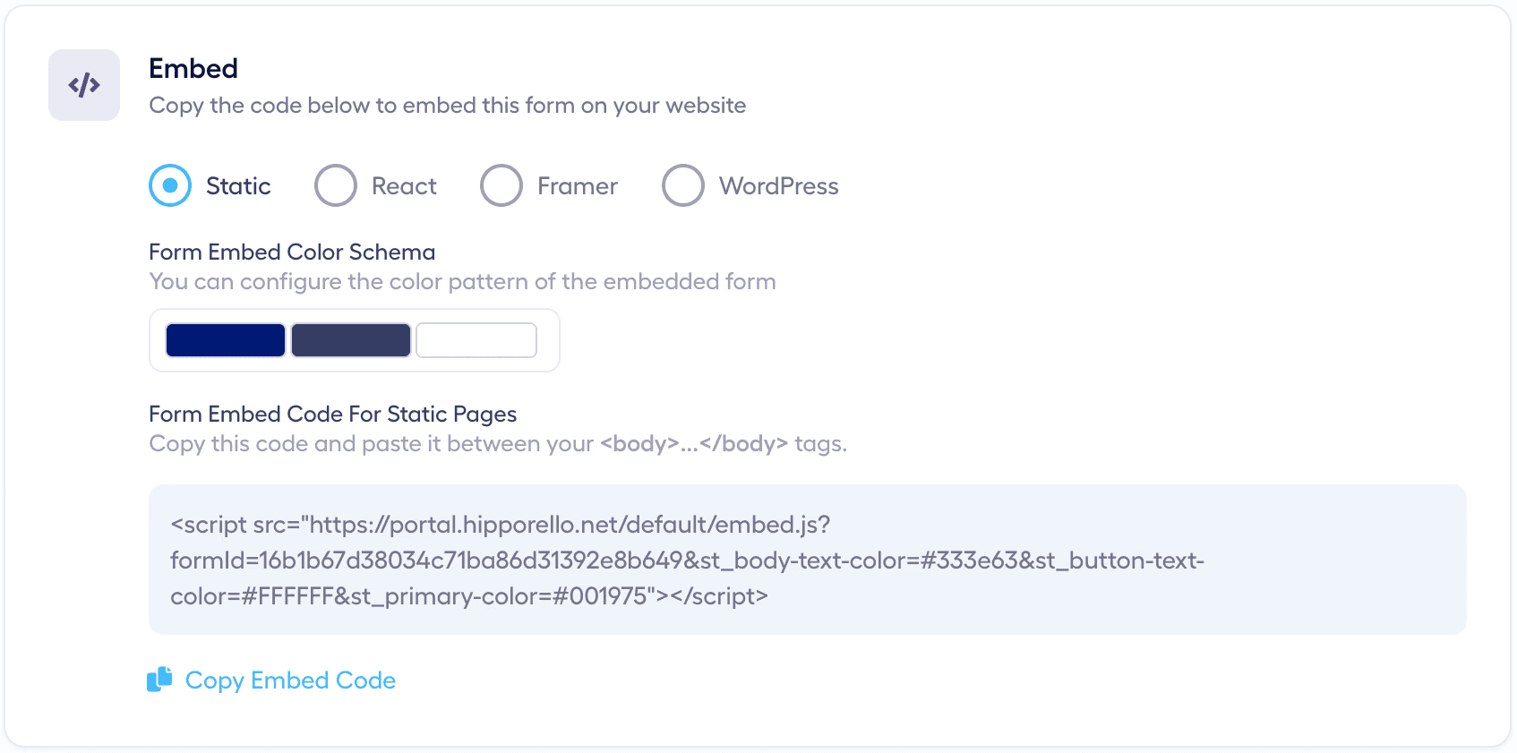 Forms can be embedded on websites or platforms such as Framer, Shopify, Wix, or WordPress. Each submission automatically creates a Trello card.