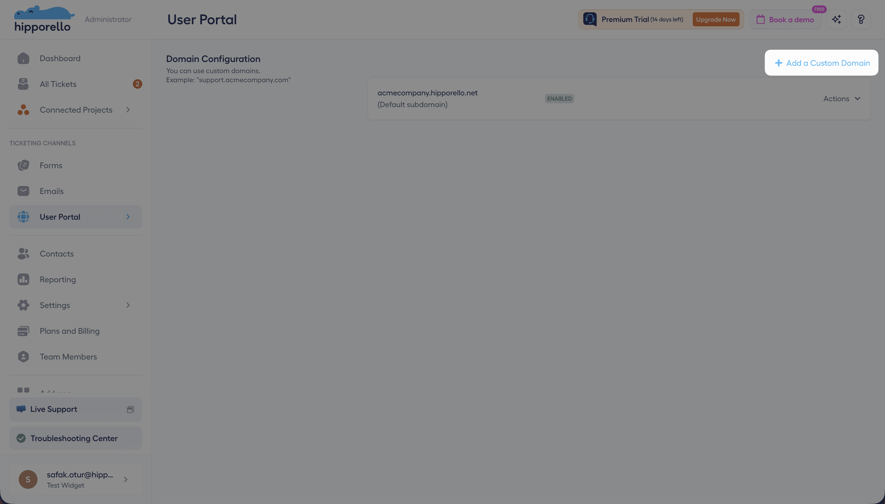 Using a custom domain strengthens your brand identity and provides a more professional and memorable experience for your users, making it easier for them to access your support portal whenever they need assistance.