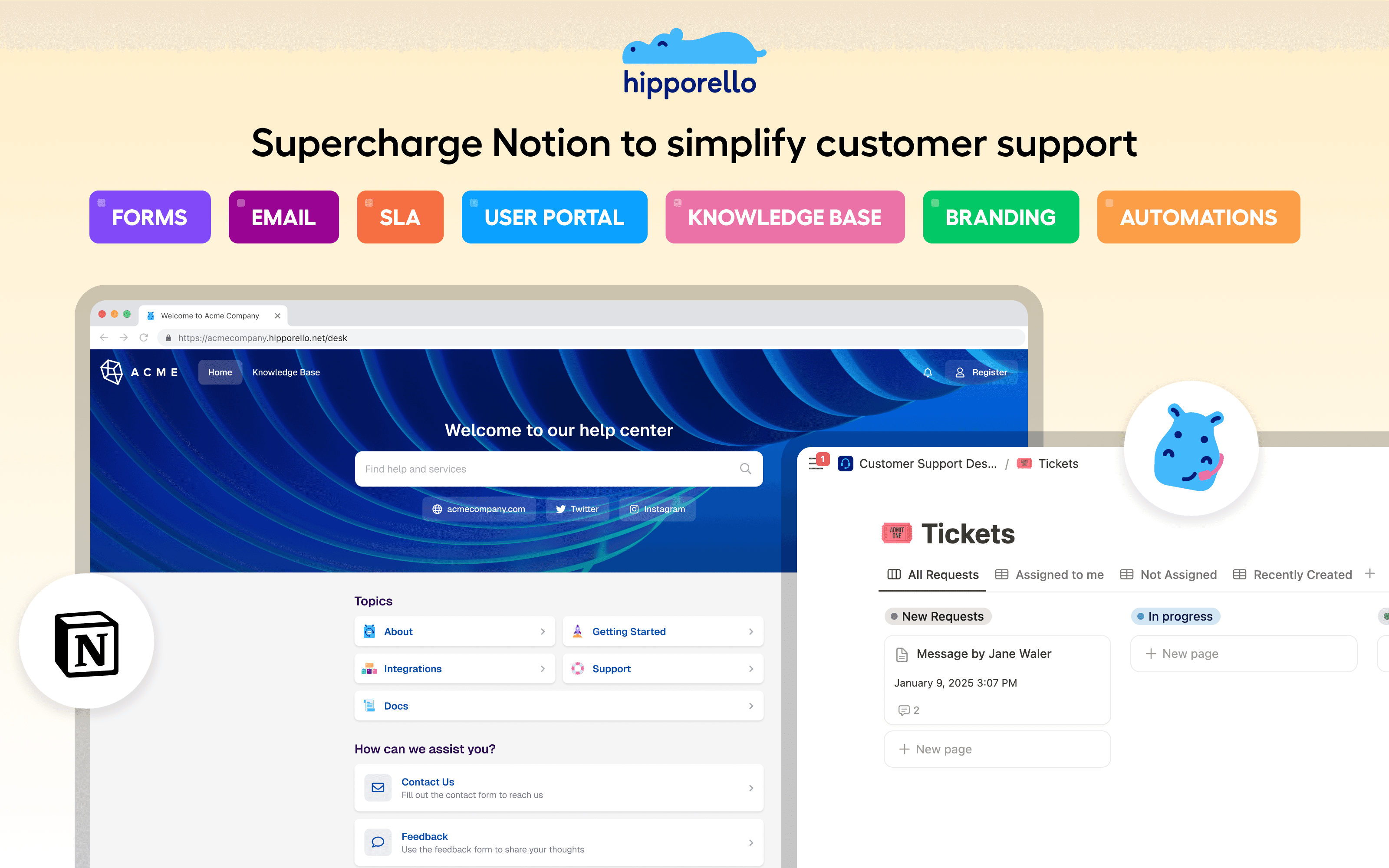 Welcome to the Hipporello Service Desk documentation for Notion. This guide is designed to help you set up, configure, and use Hipporello effectively, no matter how your team handles requests. From internal IT and HR support to customer inquiries and cross-team service management, you’ll find everything you need to build a smooth and reliable workflow.