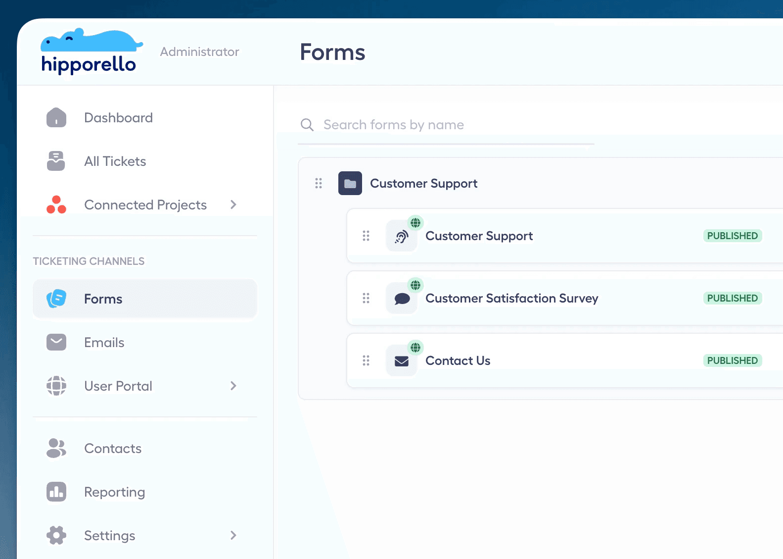 Ticketing channels in Hipporello's Service Desk for Asana: Forms and Emails